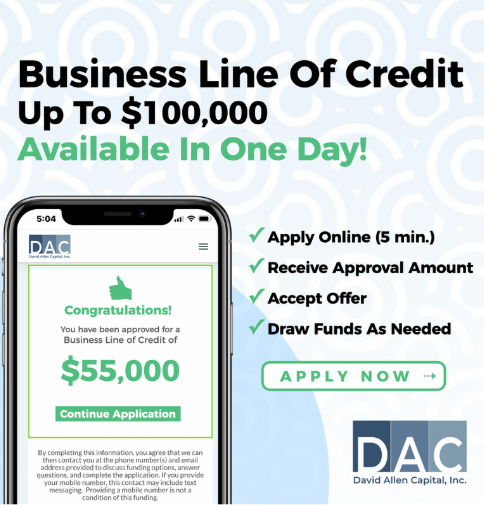 We have partnered with David Allen Capital Inc. (DAC) to offer you real financial empowerment. With David Allen Capital, businesses can get funding easily with easy qualifications. Click the link below to apply for one of the quick Loans. The whole process is fast, easy and seamless. You get approved in minutes and can receive cash in as little as 24 hours. You are even rewarded also when you refer your business associates for business funding. Try it today.